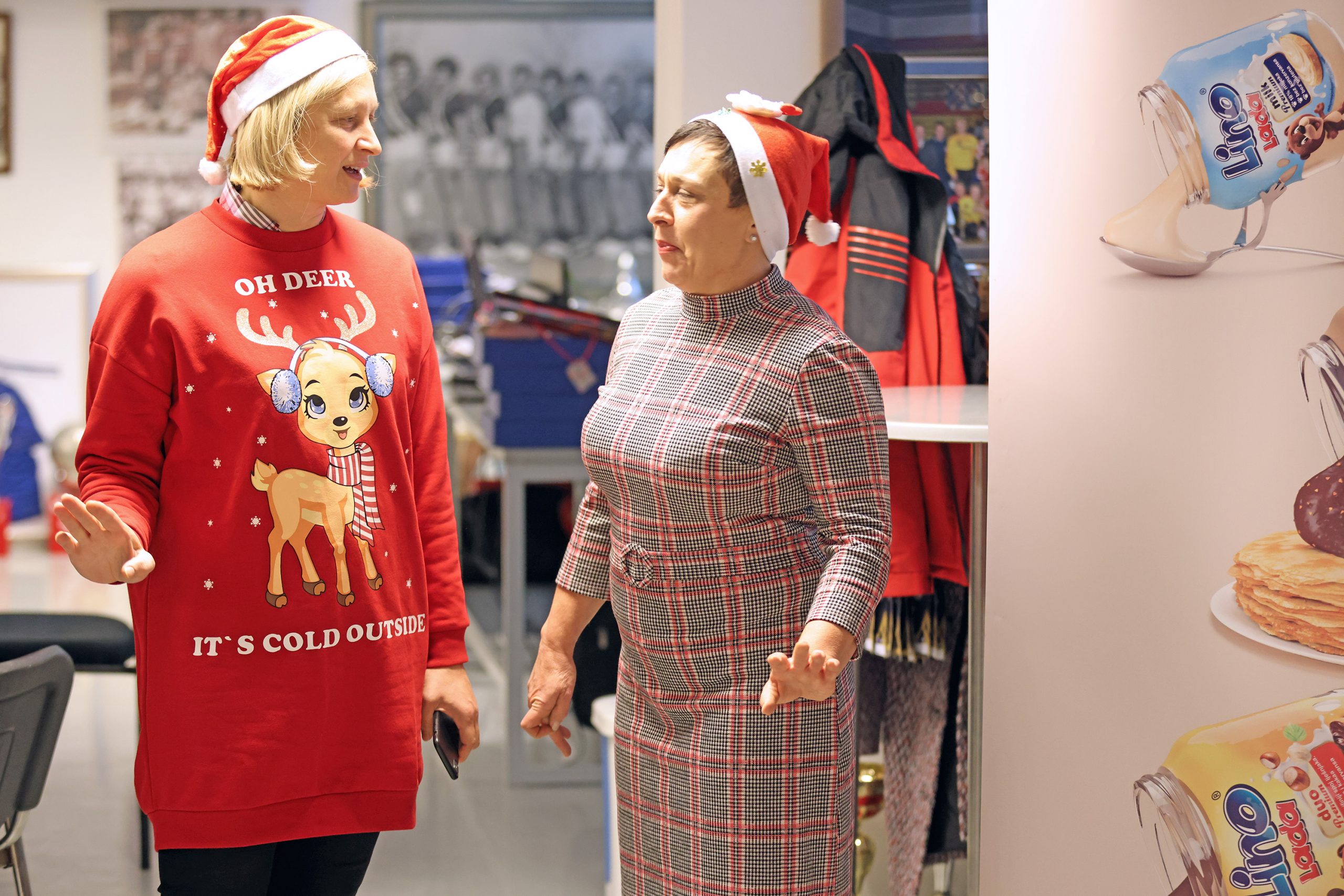 Božićno raspoloženje vladalo je jučer u prostorima RK Podravke pa su tako naše rukometašice odmah nakon naporno odrađenog treninga uskočile u elegantna izdanja baš kako priliči ovom blagdanskom ozračju.