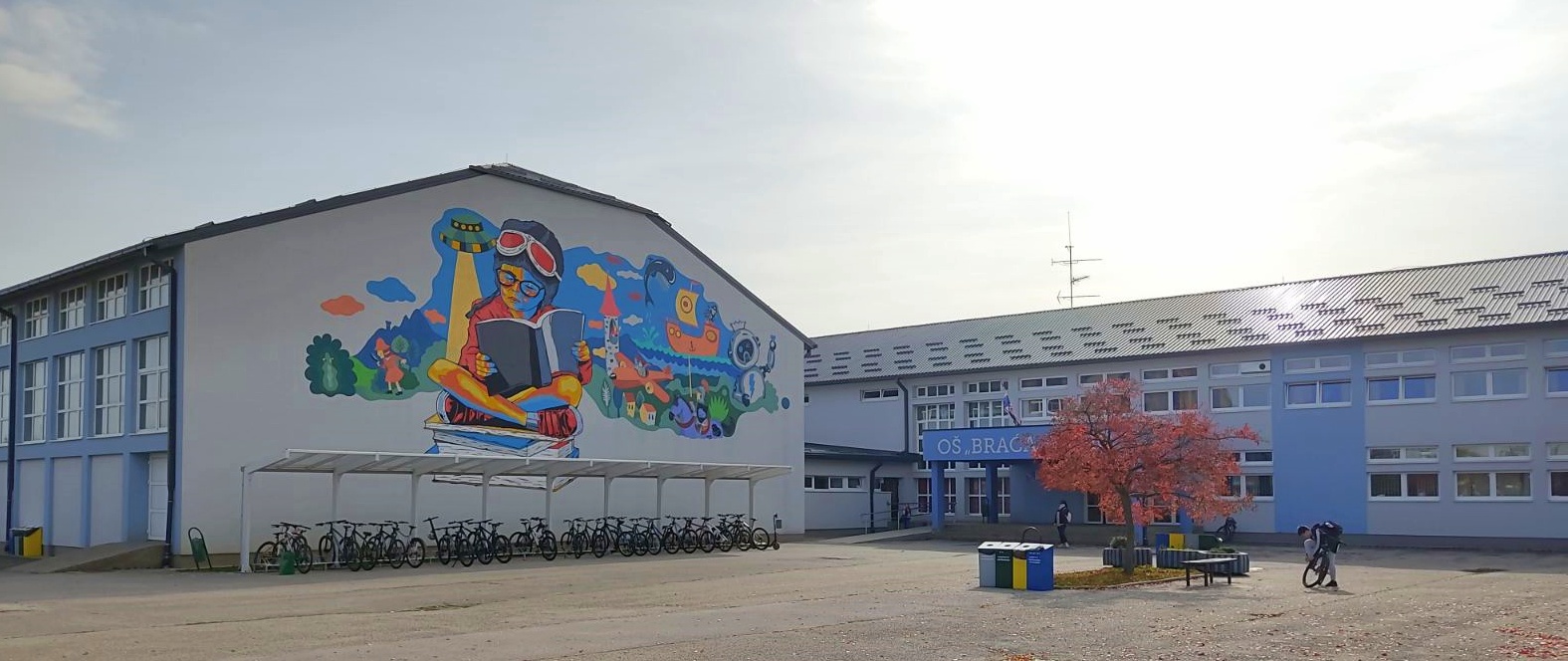 Novi oslikani zid dvorane Osnovne škole ‘Braća Radić’ potpuno je promijenio vizuru najveće koprivničke osnovne škole. Bočni zid dvorane oslikan je u sklopu ‘Street art festivala’ koji se po deseti put održao u Koprivnici u organizaciji Udruge za promicanje kulture i umjetnosti maMUZE, a izradu murala s posebnim su zanimanjem pratili učenici i zaposlenici škole, s nestrpljenjem iščekujući njegov konačan izgled. Mural je rezultat uspješne suradnje ravnatelja škole, umjetnika koji su ga izradili, Zorana Švende iz Švenda građenje d.o.o., učiteljice likovne kulture i Udruge maMUZE. Boris Bare i Zvonimir Haramija Hans autori su dinamičnog murala koji definira novi vizualni identitet Škole, a osim što uvelike doprinosi estetici okoliša, mural ima i odgojno-obrazovnu komponentu, jer boravak učenika u estetski promišljenom okruženju svakako doprinosi i formiranju njihovih vlastitih estetskih vrijednosti.