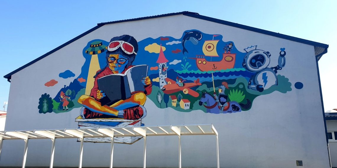 ‘Naš zajednički rad, mural pod nazivom ‘U svijetu mašte’ prikazuje dječaka uronjenog u svijet knjiga, priča tj. u svijet mašte. Dječak s pilotskim naočalama na glavi sjedi na hrpi knjiga dok jednu drži u rukama i čita. Oko njega širi se njegov svijet mašte koji je izašao iz svih tih pročitanih knjiga. U tom svijetu nalaze se detektivke, leteći tanjuri, dvorci, vitezovi, gusari, roboti itd. Poruka murala je da knjige, priče i čitanje obogaćuju naše živote i čine ih zanimljivijima te se nadamo da će i naš mural potaknuti djecu da više čitaju. Ujedno se zahvaljujemo i udruzi Mamuze te ravnatelju i djelatnicima Osnovne škole ‘Braća Radić’ koji su omogućili nastanak ovog murala – poručili su umjetnici Boris Bare i Zvonimir Haramija Hans.