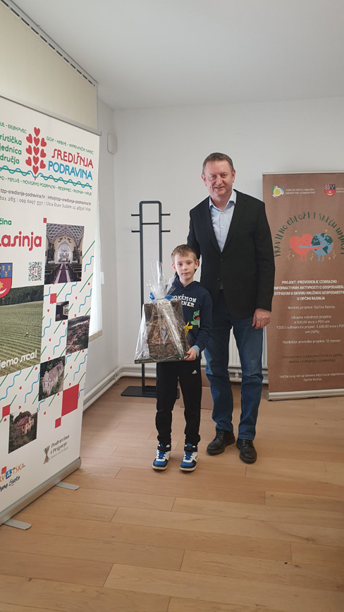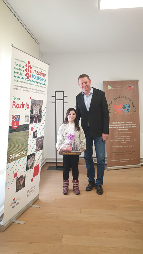 Nagrađene učenike, zajedno s njihovom učiteljicom Višnjom Sesvečan, prof., primio je načelnik Općine Davor Tetec u općinskim prostorijama. Prijamu su prisustvovali i zamjenik načelnika iz redova srpske nacionalne manjine Nikica Štibić, predsjednik Općinskog vijeća Općine Rasinja Siniša Rajić, kao i ravnatelj Osnovne škole Andrija Palmović iz Rasinje Krunoslav Belaj.