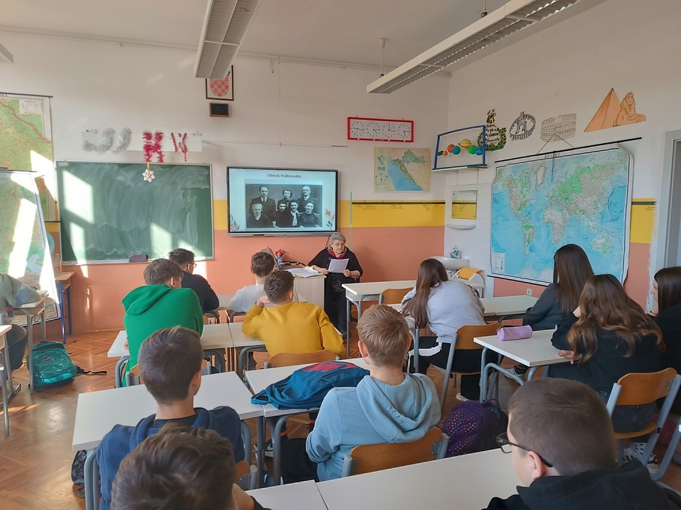 Uz to, na satu povijesti osmaši su ugostili Miru Relić-Wolfensohn koja je učenicima 8.a i 8.b razreda pričala o tragičnoj sudbini njene obitelji tijekom holokausta. Bilo je to vrlo vrijedno iskustvo za naše učenike prije svega zbog toga što poučavanje o holokaustu pruža priliku za promišljanje o vrijednostima slobode, odgovornosti i tolerancije, ali i pravednosti, ljudskosti i solidarnosti. Upravo o vrijednostima koje u školama nastojimo poticati i njegovati – zaključili su.