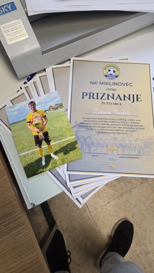 – Priznanja su također dobili kapetan i vođa ekipe Alen Hrenić, trener Aleksandar Korenika, najstariji igrač Matija Majetić, domar/zaštitar/oružar Božidar Spevan i kuhar Miro Hrpalo – zaključili su u Miklinovcu.