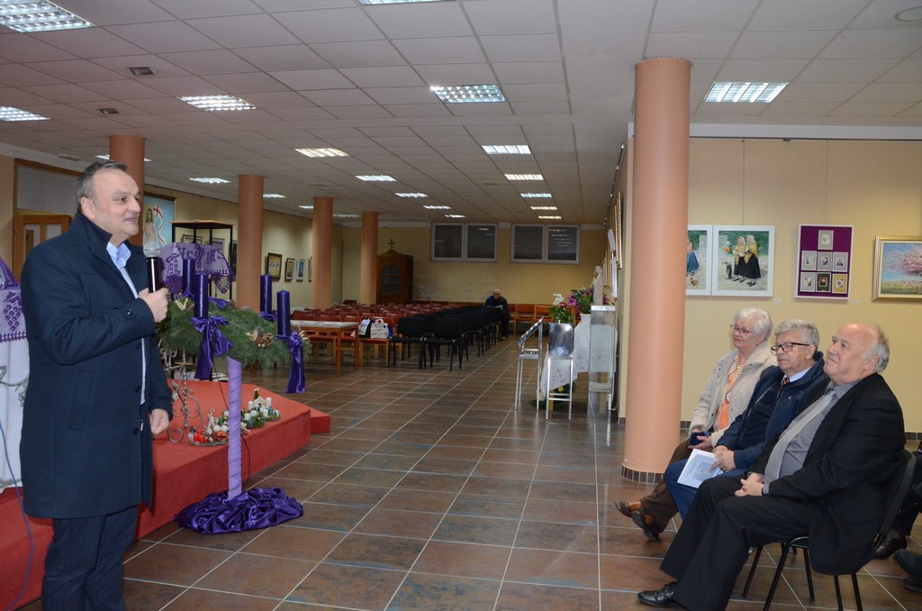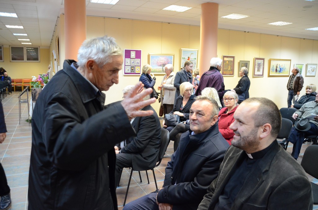 Takva je osoba Zdravko Šabarić, o kojemu su na otvorenju govorili realizator izložbe i voditelj Krešimir Blažek, zamjenik župana Ratimir Ljubić i likovni kritičar Zoran Homen. Ispred župe blaženog Alojzija Stepinca, prigodnim riječima prisutnima se obratio i vlč. Davor Šumandl, zahvalivši autoru na izložbi i darovanoj slici koja ostaje u vlasništvu župe. U sklopu otvorenja izložbe, izvedbom prigodnih vjerskih pjesama nastupio je i crkveni zbor „Stepinčeva mladež“. Izloženi radovi mogu se razgledati do 26. siječnja 2023. godine.