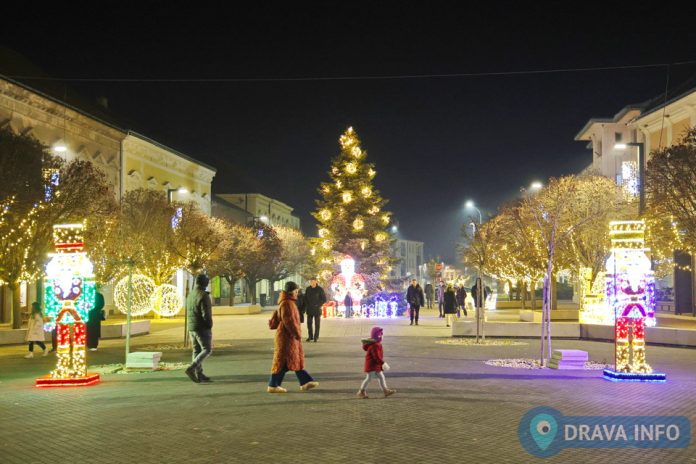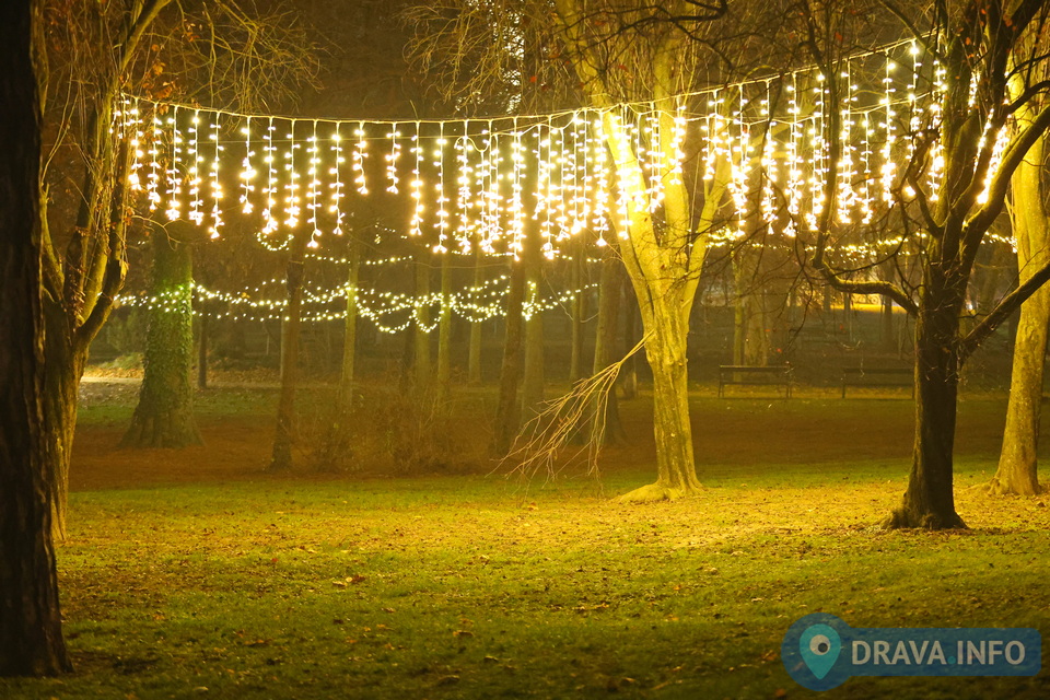 Okićen je i park, sve šetnice u središtu grada, paviljon, a nova atrakcija uz paviljon je velika kočija sa sjedalicama i konjima.