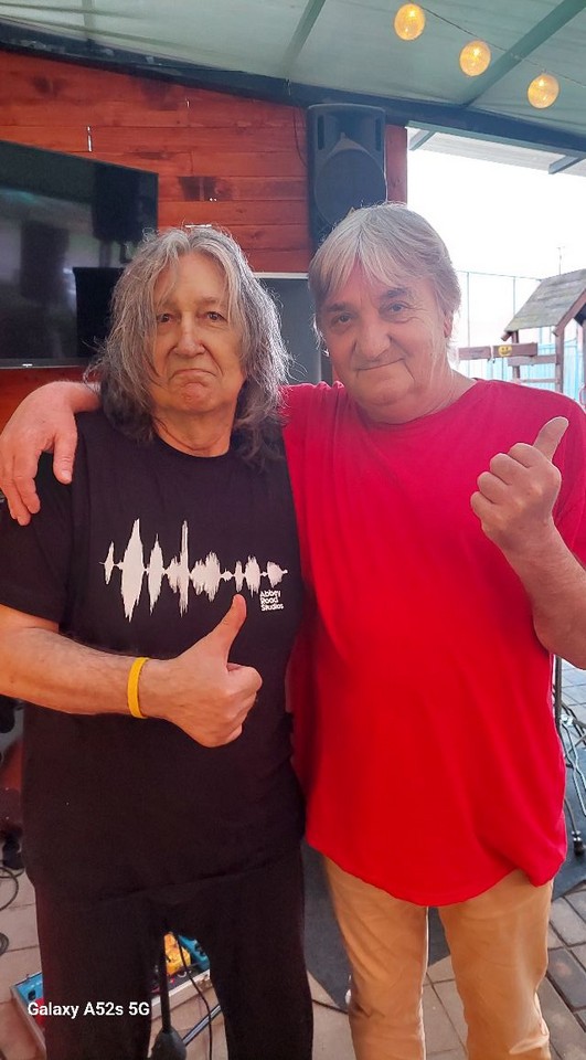 Na fotografiji: dvojica legendarnih gitarista, Vedran Božić i Krunoslav Horvat, prije koncerta Vedran Božić & Rock Masters u Koprivnica, 9. lipnja 2023. / Foto: Renato Janjić, Bluzz klub Koprivnica