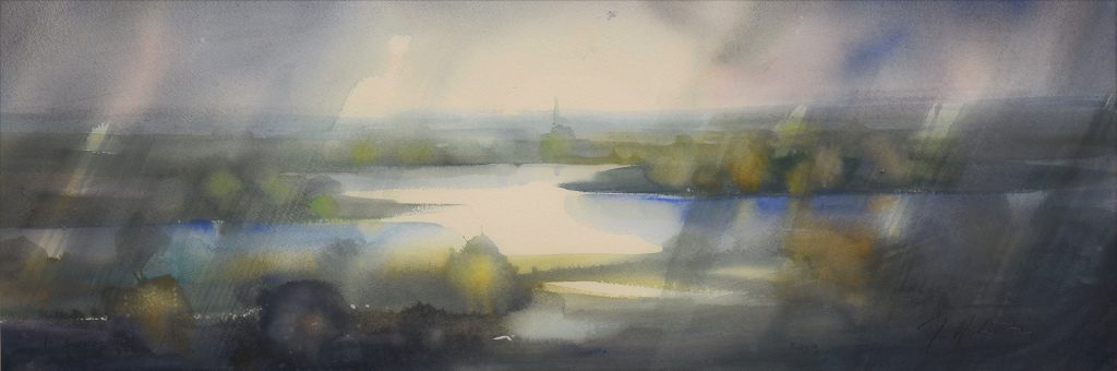 Veza s vodom od djetinjstva prisutna kroz bujice Drave u akvarelima raste i poprima drugačije, dublje i još osobnije značenje. Voda postaje aktivni sudionik nastanka slika, jednakovrijedna boji. Kroz propitivanje punine i praznine, bjeline i mrlje, papira i boje, isticanje ili negiranje teksture papira akvareli donose eksploziju ekspresivnosti. Akvareli otvaraju prostor za sazrijevanje, smirivanje, sažimanje izvježbanog oka i utreniranog kista. Pružaju mogućnost sve većeg apstrahiranja, prevođenja životno odredišnih mjesta u znakove, mrlje, simbole. Obrisi se otapaju i utapaju u papiru – nestaju i tonu, stapaju se s podlogom – u pomnoj ravnoteži horizontalnih i vertikalnih nesputanih poteza.