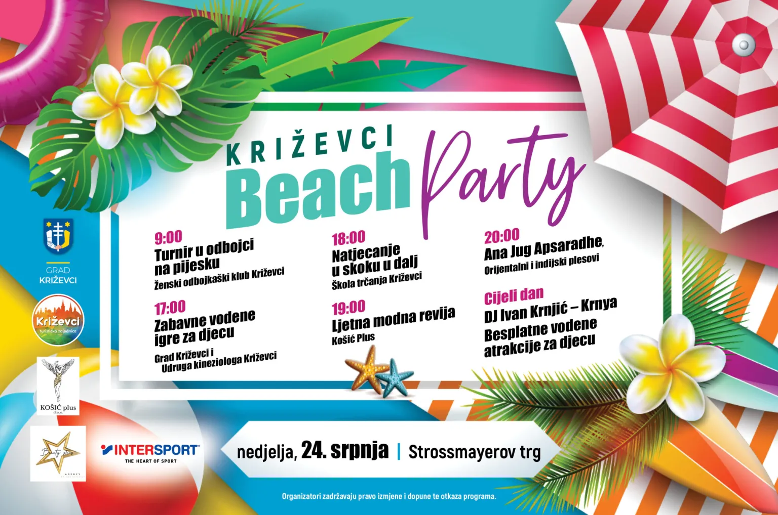 – Moći ćete se zabaviti uz vodene igre za djecu, turnir u odbojci na pijesku, natjecanju u skoku u dalj, pogledati ljetnu odjeću na ljetnoj modnoj reviji te uživati u nastupu Ane Jug Apsaradhe, a za glazbu će biti zadužen DJ Ivan Krnjić – Krnya – navode iz Grada.
