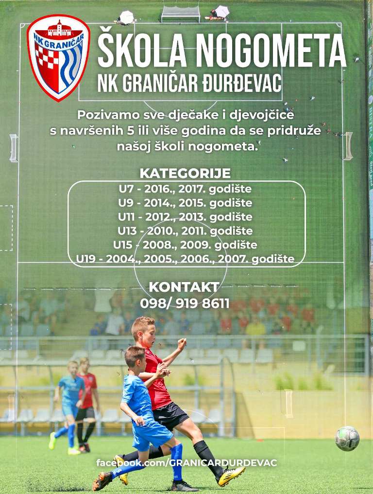 NK Graničar Đurđevac poziva sve zainteresirane djevojčice i dječake da se pridruže i upišu u Školu nogometa.