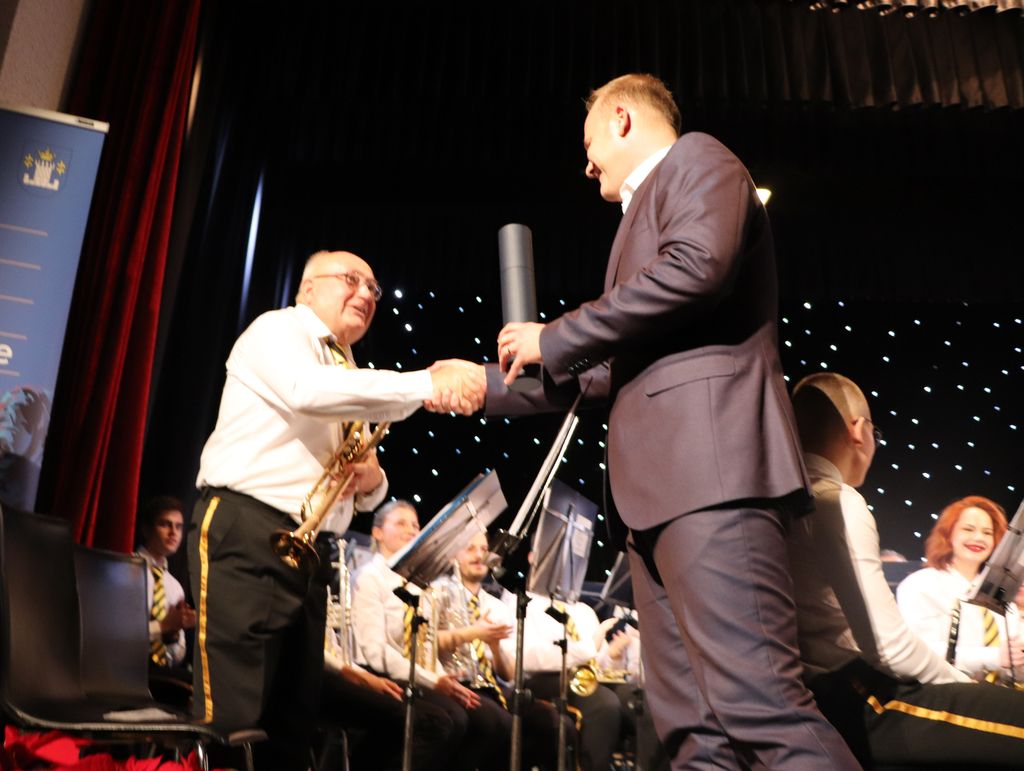 Zaslužni članovi i suradnici Orkestra primili su priznanja, a gradonačelnik je svima prisutnima zaželio sretne božićne i novogodišnje blagdane.