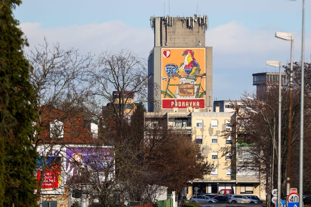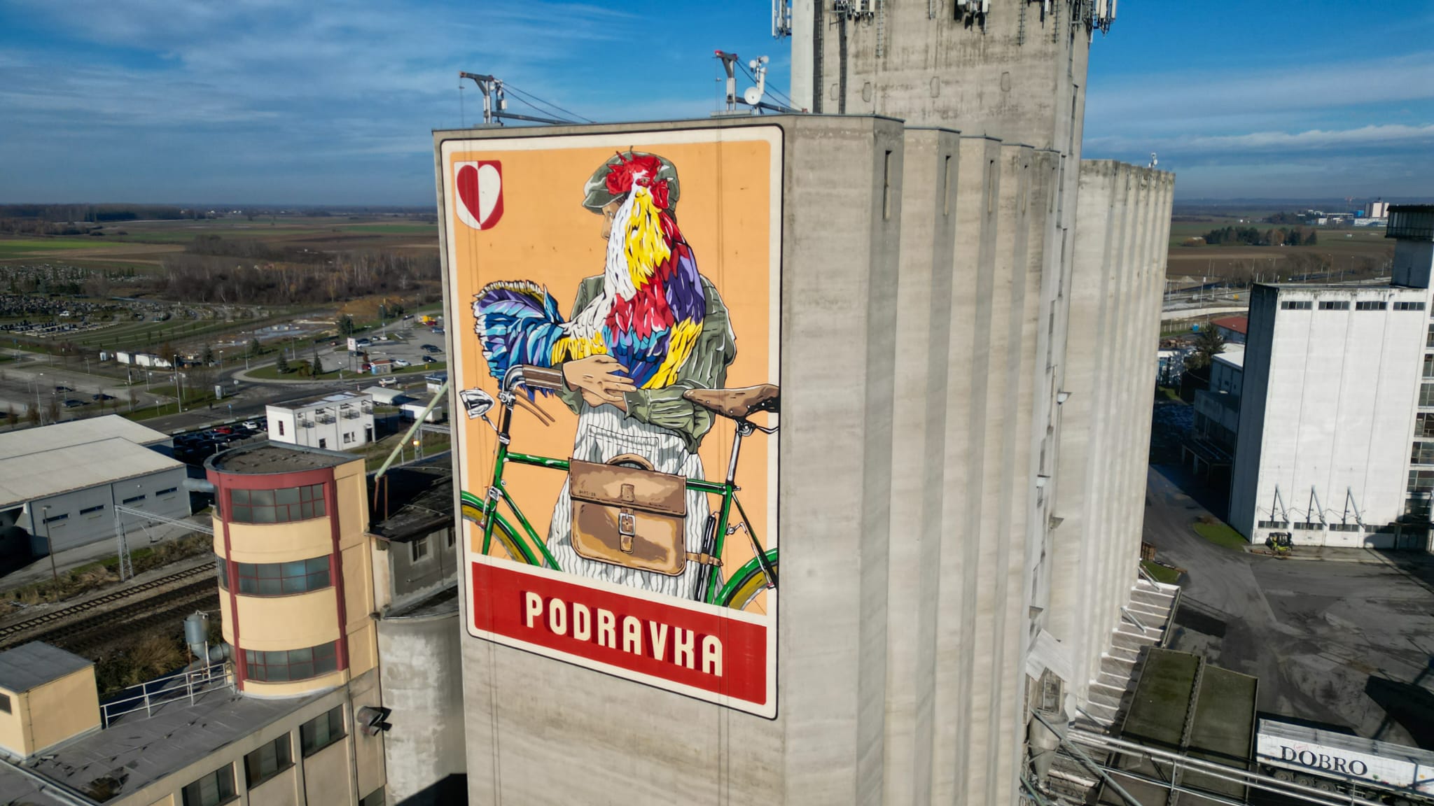 Podravkin silos u Ulici Ante Starčevića dobio je novo lice. Ovih dana dovršen je novi mural koji prikazuje čovjeka koji drži pijetla u ruci i stoji pored bicikla. Mural se nalazi na bočnoj strani Podravkinog silosa, na četrdeset metara visine, a površine je 300 kvadratnih metara. Novo umjetničko remek-djelo oslikao je popularni hrvatski street art umjetnik Boris Bare.