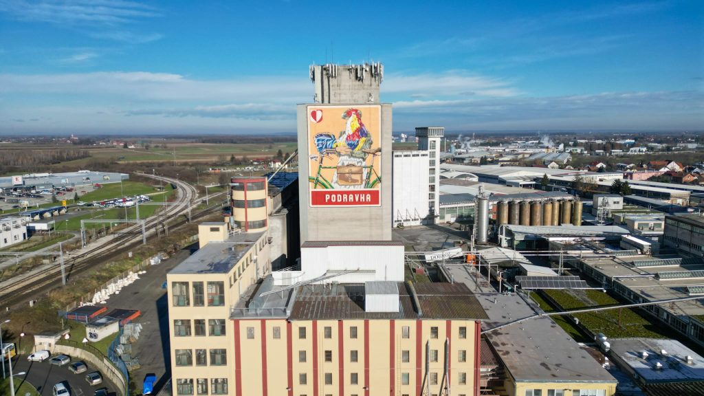 Ulaz u Koprivnicu tako od sada krasi mural koji prikazuje ključne simbole te tradiciju Podravke i grada Koprivnice na suvremen način. Mural je zamijenio popularni znak pijetla koji je bio dugogodišnji simbol Podravkinih silosa na ulazu u grad.