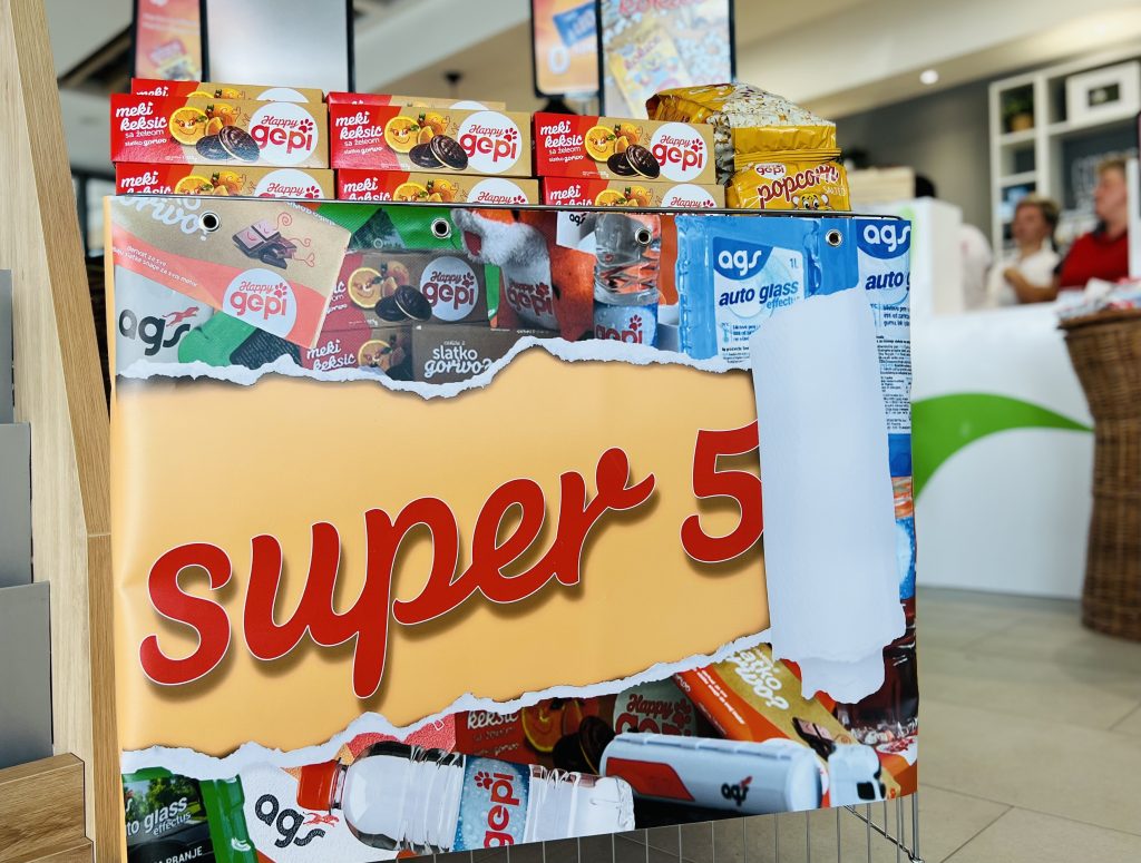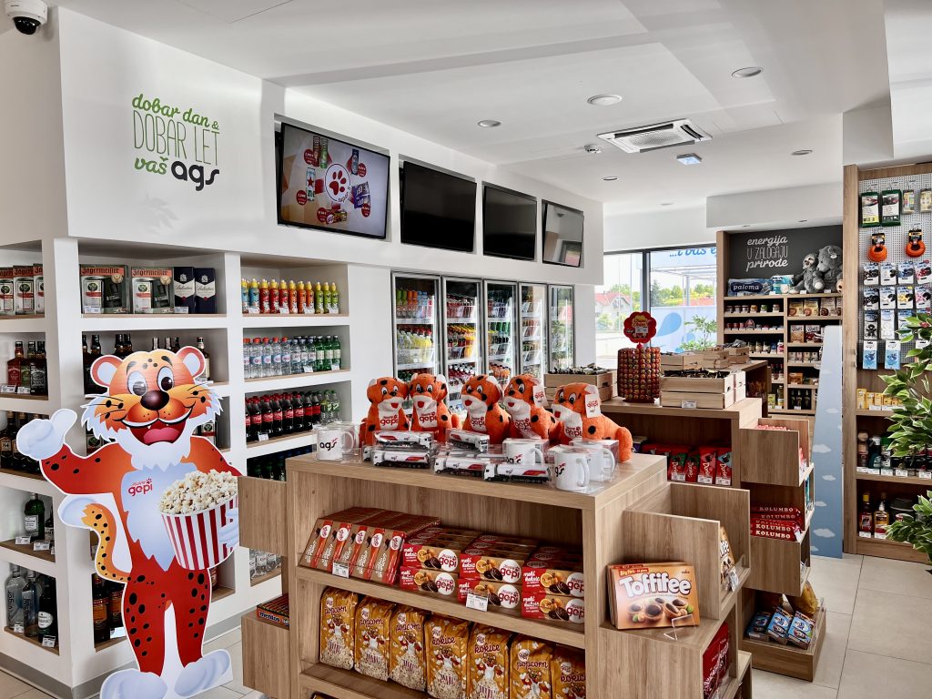 U sklopu novog benzinskog servisa uz QUICK SHOP trgovinu otvoren je i AGS COFFEE TIME ugostiteljski objekt koji će vam u svom modernom i ugodnom ambijentu nuditi osvježenje uz široku ponudu pića. Kao dodatnu pogodnost, uz benzinski servis otvara se i ZOOM samoposlužna autopraonica koja će vama i vašem metalnom ljubimcu biti na raspolaganju svakog dana od 0-24 h.