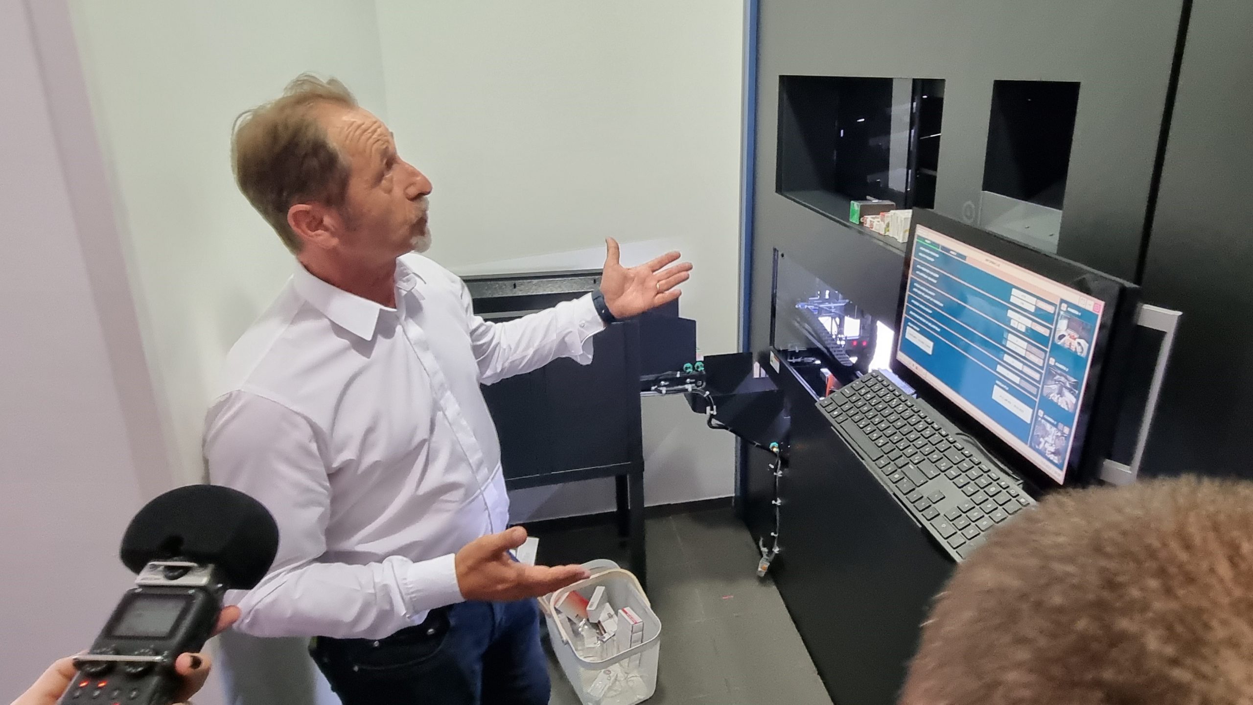 Boris Brčić, direktor tvrtke BGO koja je napravila ovaj sustav predstavio je njegov rad i dodao da je na ulazu u ljekarnu napravljen stakleni zid preko kojeg se može pratiti rad robotske ruke. Cijeli prostor dobio je i novu klimatizaciju koja održava i temperaturu u robotskom skladištu i ostalim prostorijama ljekarne.
