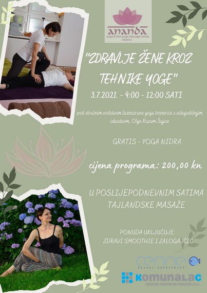 Zdravlje žene kroz tehnike yoge, odnosno radionica licencirane yoga trenerice Olge Razum Šuice održat će se ove subote na Bazenima Cerine.