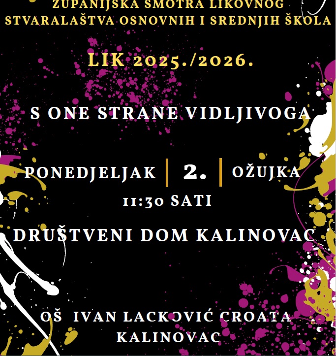 Osnovna škola Ivan Lacković Croata u Kalinovcu bit će domaćin Županijske smotre likovnog stvaralaštva osnovnih i srednjih škola.