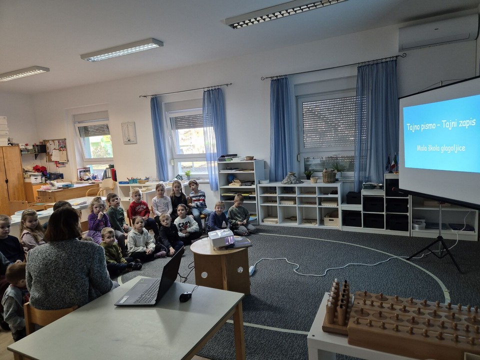 Kroz istraživanje i povezivanje slova (transliteracije) već dobro poznate latinice i “stare” glagoljice djeca su imala priliku dešifrirati riječi poznatih pojmova te ispisivati svoja imena glagoljicom. Pritom su razvijala svoje grafomotoričke vještine, koncentraciju, pažnju, znatiželju te osjećaj pripadnosti vlastitoj kulturi i tradiciji. Time smo ujedno i obilježili Dan hrvatske glagoljice i glagoljaštva koji se obilježava svake 22. veljače.