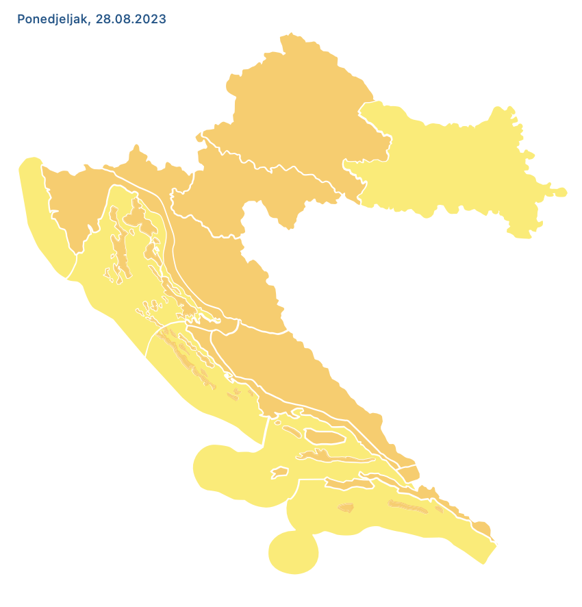 U cijeloj je zemlji danas na snazi narančasti meteoalarm zbog iznimno visokih temperatura, a narančasto upozorenje upaljeno je i za sutra zbog grmljavinskih nevremena.