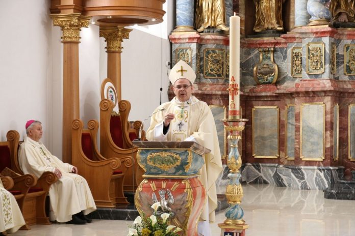 – Petar i Ivan će na posljednjoj večeri imati znakovit razgovor s Isusom. Kada će Isus najaviti da će ga jedan od apostola izdati, Petar traži od Ivana neka upita tko će to biti. Znao je da je Ivan najbliži do Gospodina, pa se Ivan naslanja Isusu na grudi i pita tko je taj koji će ga izdati. To je tako simbolično i lijepo izrečeno, on naslonjen na izvor života može čuti kako kuca Isusovo srce. Tamo gdje Bog kuca ljubavlju, tamo se postavljaju temeljna pitanja. Treba prisloniti uho na njegovu nutrinu i čuti. Petar i Ivan imaju različit hod u Isusovoj muci. Ivan prati Isusa na križu, i upravo s križa Isus će mu se obratiti i dati mu poklon ljubavi. Ona koja je Isusa najviše ljubila i koju je Isus najviše ljubio, dobiva na poklon ljubljenoga učenika. Ivan je vidio kako je Isus izdahnuo pa će i prvi potrčati na grob jer udahnuo je dah križa te će moći trčati snažnije nego Petar. Ipak, zastat će na grobu i pustiti Petra da prvi uđe, njemu je Isus prvome dao Riječ. Ivan i Petar iz groba izlaze kao novi ljudi. Ono što je bila klica smrti, gdje se širio virus koji ubija, sada postaje mjesto života. Oni koji udahnu iz Isusovog groba, udahnjuju ‘virus života’, bivaju ‘zaraženi’ i trče do na kraj svijeta da i druge ‘zaraze’ mirom, radošću i životom. To je ona ‘zaraza’ koju ni jedan virus više ne može uništiti. Samo moramo ući u taj grob i udahnuti život da bismo ga mogli dalje nositi. Božju riječ može prenositi samo onaj tko duboko vjeruje i diše Isusovim uskrsnućem – poručio je biskup Radoš u homiliji.